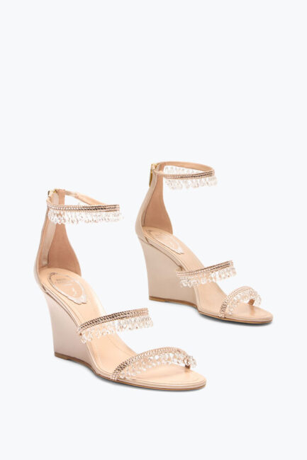 Jeweled CHANDELIER POWDER PINK WEDGE SANDAL 80 | Rene Caovilla®