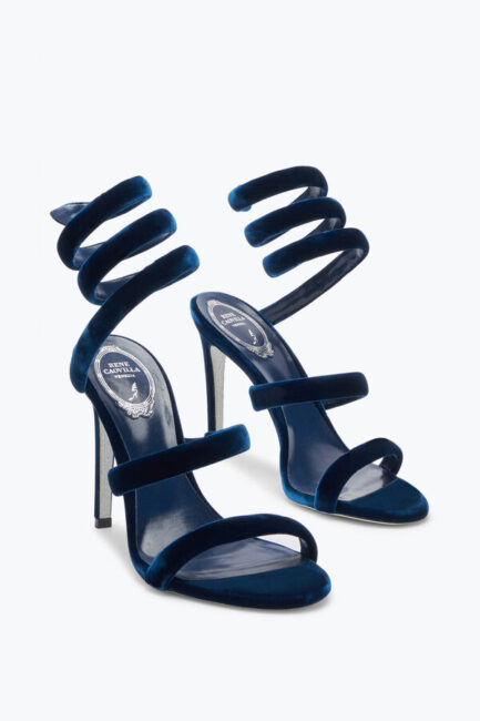 Jeweled Cleo Navy Velvet Sandal 105 | Rene Caovilla®