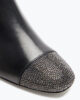 A fall-winter essential, the Bonnie ankle boot comes in a bold black leather version, with the toe and block heel covered in crystals that add the shimmering touch of the maison. A comfortable and chic passe-partout, to be worn with ease from morning to evening.