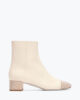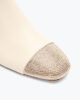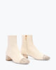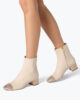 Among the most loved designs for autumn-winter, the Bonnie ankle boot is now in ivory leather with a block toe and heel studded with gold crystals, creating a striking, sparkling contrast effect. Ultra chic, this style customizes any look with creativity and refinement.