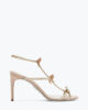 The Caterina sandal captures the Maison’s dreamy essence and transforms it into a masterpiece. With a medium stiletto heel and stardust sole, this style features an open toe T-bar design and three pretty bows that enhance its feminine and romantic appeal. Handmade in Italy, it has a convenient ankle strap for a comfortable fit.