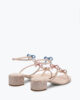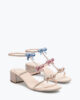 The Caterina sandal is classy and refined thanks to the romantic bow details, pastel colors and T-shaped design. Illuminated by crystals in three different shades for each bow, it is sophisticated and versatile, paired with a pair of jeans or trousers.