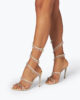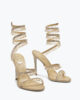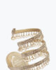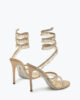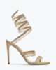 The highest form of intricate glamour, the Chandelier stiletto sandal is defined by a smattering of hand-stitched crystal drops evocative of Venetian chandeliers. Together with baby crystal, they add a luxurious touch to the signature coiled snake element and upper bands. – Made in Italy- Heel height 4,1- Almond toe- Satin and leather- Leather sole
