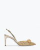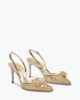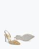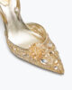The iconic Cinderella is dressed in a precious golden nuance in this model studded with rhinestones and sealed with a crystal flower. A slingback with a fairytale allure that shimmers with its own light and makes you shine.