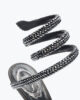 The Cleo pump adds a touch of character to the most sophisticated evening looks. Embellished with maxi crystals that adorn the toe, the serpent and the flared heel, this style enhances femininity and ensures a memorable entrance at the season’s parties.