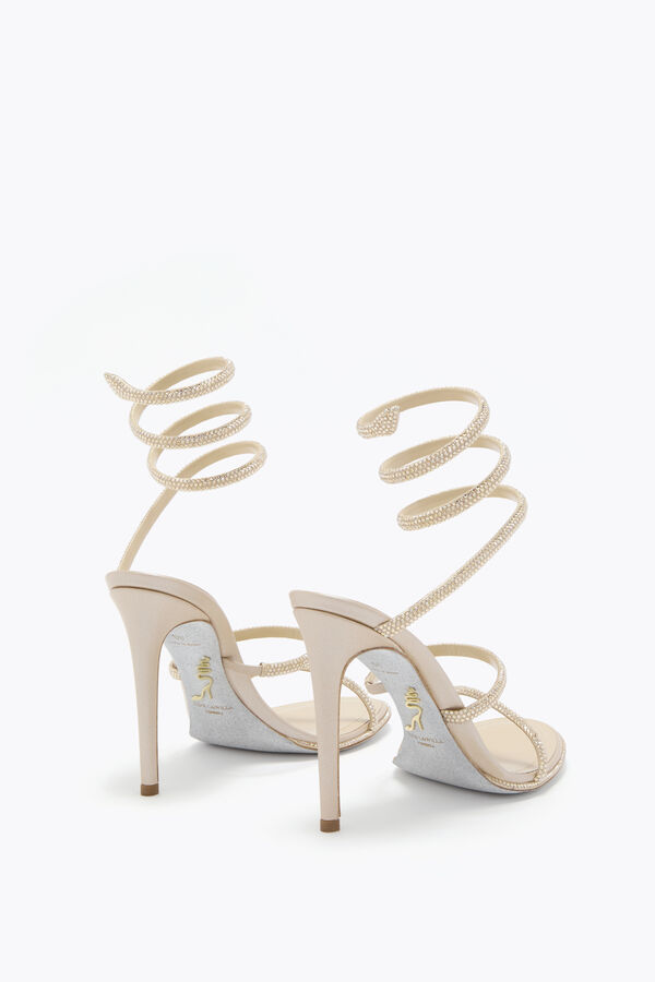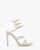 With its stiletto heel, signature serpent, and versatile neutral hue, this Cleo sandal is a timeless wardrobe staple designed to transcend seasons.