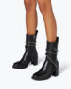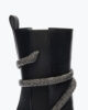 The mid-height Cleo boot elevates a classic Chelsea design with glamour and femininity ensuring round-the-clock comfort. Made from smooth black leather and set on a sturdy rubber sole, it is embellished with the crystal-encrusted snake element and rows of tiny crystals around the welt. – Made in Italy- Heel height 2,4- Almond toe- Leather- Rubber sole