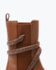 A winter staple with equestrian roots, the Cleo Chelsea bootie reimagines a classic with a streak of bling. In a rich hazelnut brown polished leather, the smoked topaz crystal-encrusted serpent will jazz up your favorite winter looks. Complete with side gussets, pull-tab and lug sole, it bonds glamour and resilience.• Made in Italy• Heel height 1• Round toe• Leather• Rubber sole