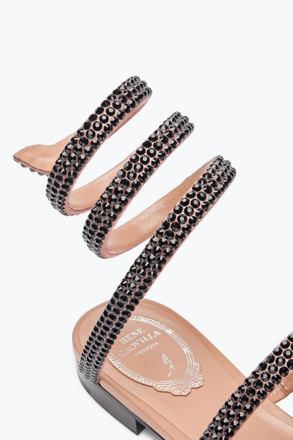 Cleo lovers will find the codes of the signature style in this unexpected, versatile flat version. The serpent wraps and flatters the silhouette while the double row of black crystals stands out on the skin, giving character and charm to day-to-evening looks.