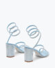 Sophisticated and ethereal in this pastel blue nuance, the Cleo sandal is the passe-partout model for spring and summer, thanks to the comfortable heel which, combined with the silver crystals on the straps and serpent, make it elegant and versatile.