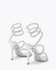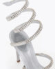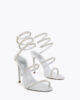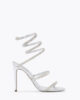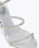 The new Spark serpent spiral makes its debut for Fall-Winter 25-26. Adorned with shimmering baguette-cut crystals, this eye-catching detail elevates the Cleo sandal, presented here in metallic silver.