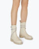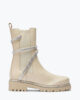 The white biker boots CLEO are an exclusive model made with fine materials and are characterised by an exclusive charm. These ankle boots have a rounded silhouette at the tip, elasticated inserts and eyelet on the back that facilitate the fit. The snake application wraps sinuously around the ankle and is made with bright white rhinestones. The crystals are also reflected in the junction between the uppers and matching sole. Ankle boots are perfect to complete a total white look or to create exclusive combinations with a casual-chic taste.