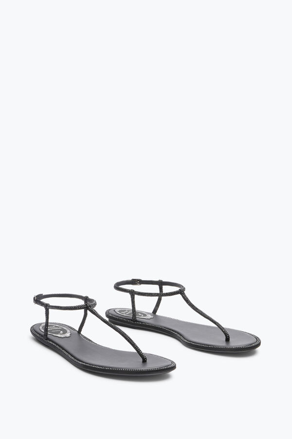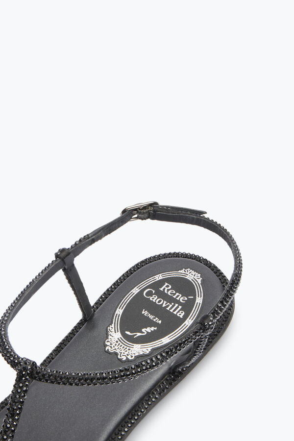 Jeweled Diana Black Flat Sandal 10 | Rene Caovilla®