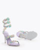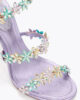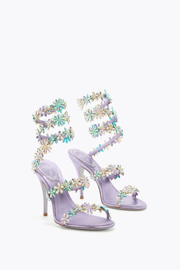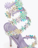 The lilac Eva sandal opens the doors to a universe of delicacy and femininity, combining the Maison’s signature elements – the serpent and the stardust sole – with hand-applied iridescent flowers, for a result of impeccable class.