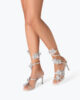 Combining romance and refinement, the Floriane sandal embodies the epitome of the maison’s excellent savoir-faire. This iconic style is defined by the flowers that adorn the serpent, made of lace and tulle, dotted with crystals that stand out against the white of the shoe. The midi heel makes this shoe extremely comfortable.