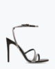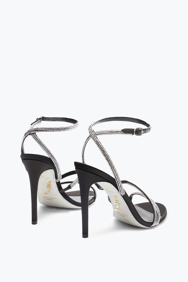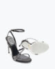 The Irina sandal embodies the luxury of understated elegance. Its essential design, featuring two delicate asymmetric straps and ankle strap, is highlighted by the micro crystals adding the distinctive and sparkling touch of the maison. In this black and silver version, it is a passe-partout in every season and occasion.