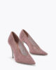 Defined by its high-cut pointed silhouette and a delicate constellation of all-over crystals, the Jinny pump captivates with understated elegance.