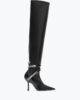 Intriguing and bold, the Juniper style lights up the colder season with its over-the-knee design. The eye-catching serpent in gold metallic links stands out against the black leather for a play of contrast and texture. A model that does not go unnoticed and celebrates femininity and condifence.