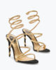 Black velvet and the signature gold rhinestone serpente: the Margot sandal radiates glamour with every step. Essential yet impressive, with the classic stardust sole, it’s the bright final touch for holiday season looks and beyond. Made in Italy.
