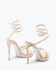 The emblematic Margot is reimagined with a platform – slimming the figure but ensuring a comfortable fit – and gold and silver crystals that create a bright, original play of reflections.
