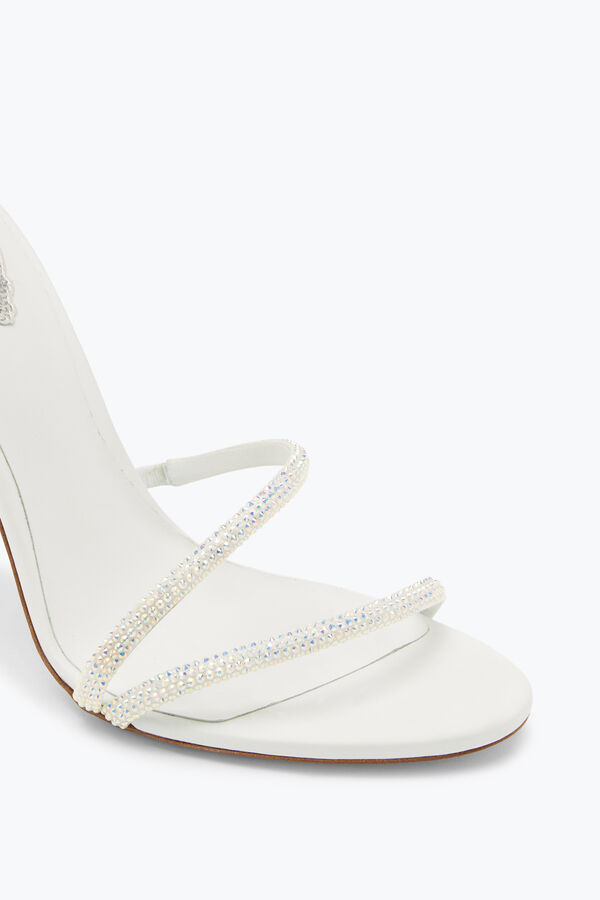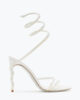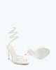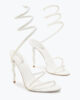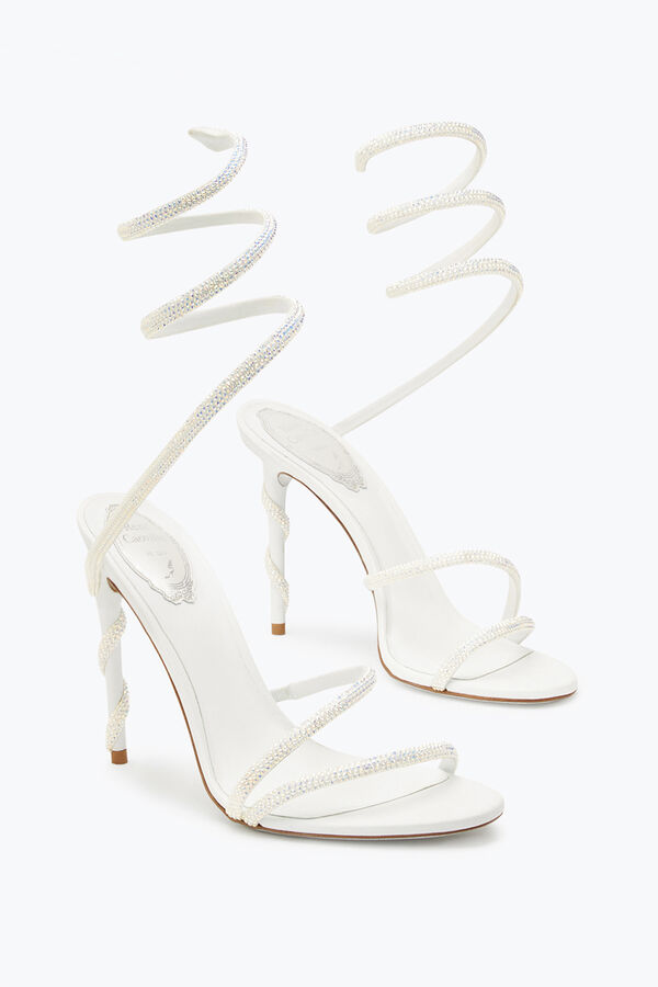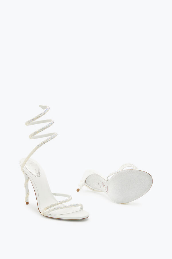 Margot is the essence of brightness. These pure optical white jewel sandals are handmade by the best Made in Italy artisans, following rules and scrupulous traditions that only Caovilla can make unique. Made of soft leather, Margot sandals have as main presence the snake-shaped band that takes shape from the toe to embellish the stiletto heel. The optical white allows the sandal to be modern and elegant at the same time, with a soft shape that stands out in the ascent to the ankle of the snake embellished with points of light crystal color blue and purple. The heel is made from a set of different woods of white color that allow both a proper stability but also a durability over time, also with its height of 15 cm allows you to make the sandals ideal for both a ceremonial look for a completion of outfit. Complete with a grey pearl sole with stardust effect.