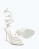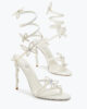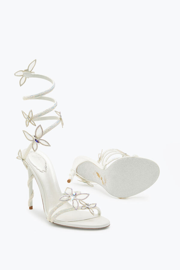 A true masterpiece of artistry, this new version of the iconic Margot sandal is elevated with dainty crystal-encrusted tulle butterflies that flutter delicately on snake strap and on the upper bands. The snake wrapped around the heel and the hallmark silver-dusted sole add the finishing touch.- Made in Italy- Heel height 4,1- Almond toe- Satin and leather- Leather sole