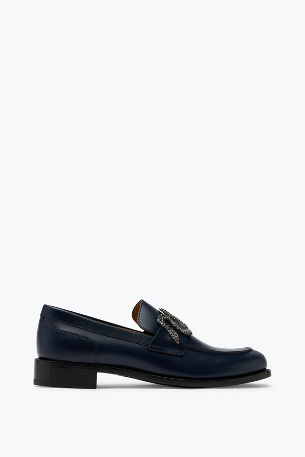 The Morgana loafer in dark blue creates a formal and masculine look with a classy touch. With a comfortable fit, it is practical and perfect from the office to a dinner out thanks to the crystal serpent which adds an extra twist.
