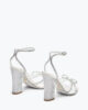 Romantic with its delicate bow, the Nicole ivory sandal is perfect for summer ceremonies. The tone-on-tone crystals brighten the look with understated elegance while the Soul block heel adds comfort and versatility.