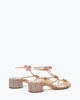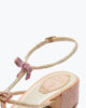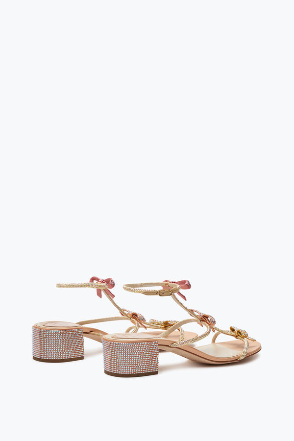 The flat jewel sandals CATERINA follow the dynamic and always busy woman’s day with their refined and elegant style, while perfectly matching every look. These elegant sandals are a T-bar model with an ankle and double strap. Micro-rhinestones cover the satin and heel, providing a glamorous effect. These sandals are finished with three small bows that give the model further originality.