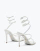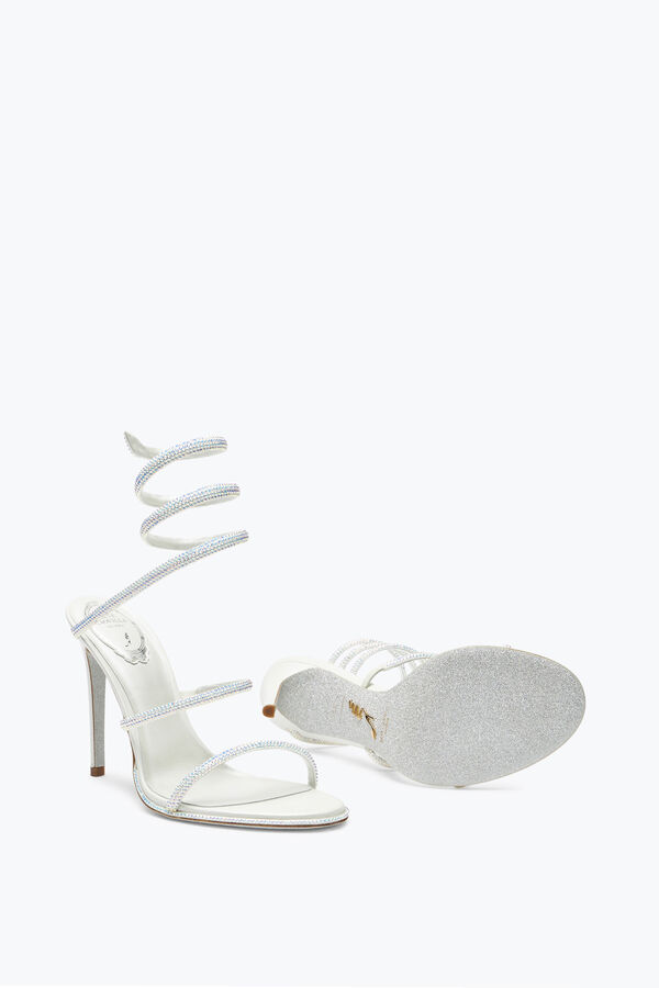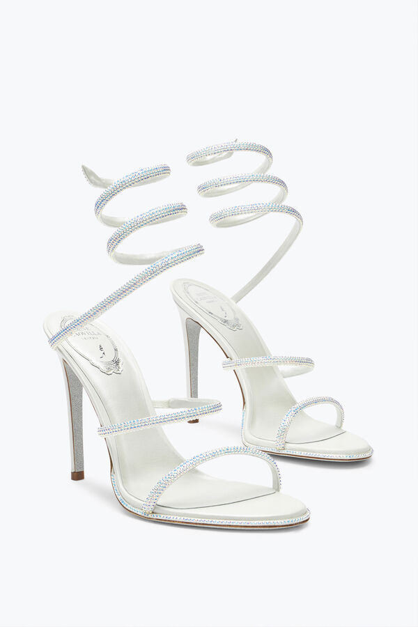 Designed for the woman who loves to feel like a goddess on the most important occasions, these elegant high-heeled sandals CLEO represent a model that combines ethereal charm with the shine of iridescent rhinestones. The Made in Italy design of this model is characterised the double straps and the spring around the ankle with a snake-head finish, which wraps the leg in a sinuous embrace.