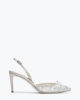 The silver sandals CINDERELLA are made of lace with a refined decoration with assorted crystals and rhinestones. The leather heel strap features an adjustable buckle closure. The medium stiletto heel adds a further touch of femininity to this romantic Made in Italy model.