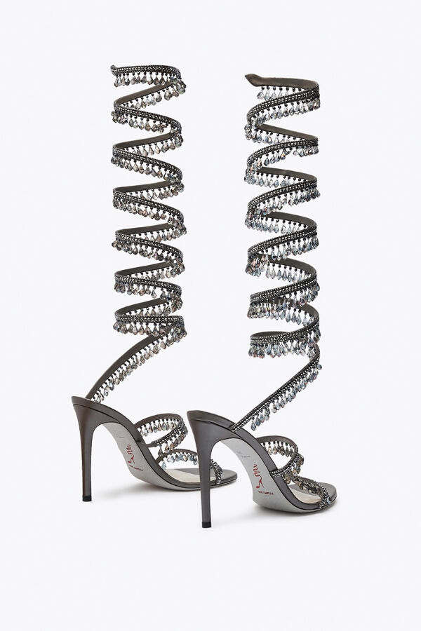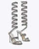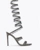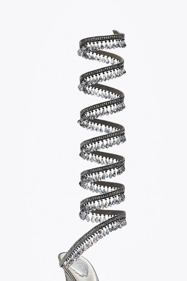 The iconic Chandelier evolves with this extra-long serpent, wrapping around the leg up to the knee. The boldness of the design is balanced by the romantic powder pink nuance and the refined tone-on-tone crystals that jingle with every step.
