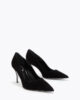 A classic pointed silhouette meets timeless black in this elegant pump, designed to transition effortlessly from day to night thanks to its 3.1″ heel. Subtle tone-on-tone crystal trims add the maison’s unmistakable signature.