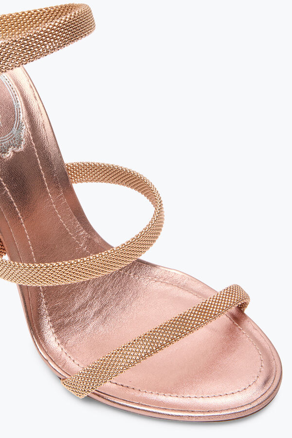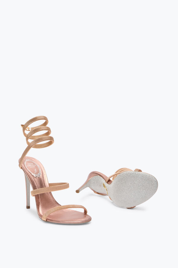 Romantic and sophisticated, the rose gold nuance colors the original metal mesh of the Trigold Cleo sandal. Emblematic, with its serpent that wraps the ankle, this style never ceases to amaze, adding subtle refinement to any look.