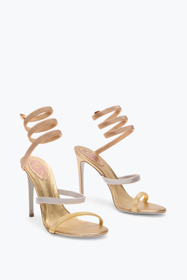 The subtle shades of rose, yellow and white gold color the straps and serpent spiral of the Trigold Cleo sandal for a result of impeccable charm. In this refined design, the straps are crafted from a unique metal mesh, evoking the elegance of bracelets and necklaces for an added touch of sophistication.